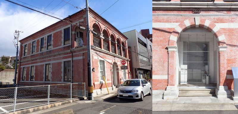 煉瓦造2階建、銅板葺き、赤煉瓦に白石の外壁、5連アーチの2階ベランダ、1階入口のアーチなのほか、軒下にはデンティルが施されたお洒落な建物(国登録有形文化財)