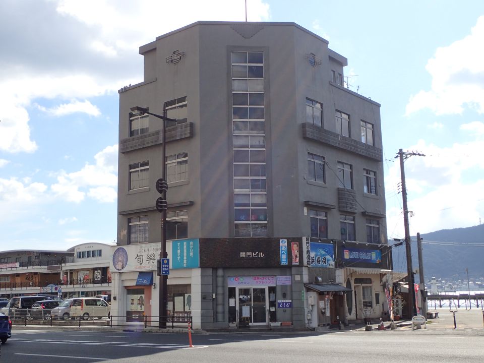 旧下関英国領事館の向かいにある関門ビルは、1931年(昭和6年)に関門汽船(株)の事務所として建てられたアールデコ調の建物