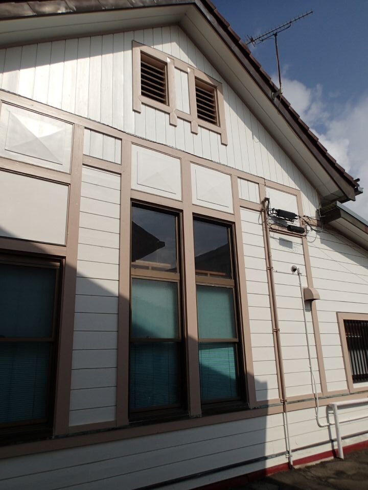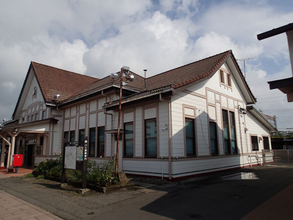 東北の玄関口にふさわしい瀟洒な建物は、正面に張り出した入口上部の大きな破風が印象的で、幾何学模様の装飾が粋です。
