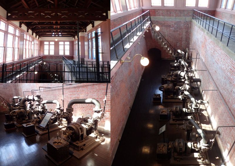 建物基壇部から地下にかけてはレンガ造となっており、ポンプが当時のままに残されていました。