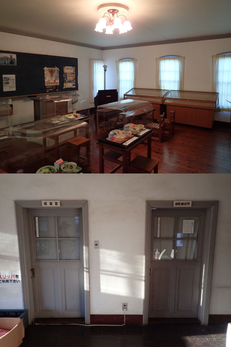これだけの建物ですが、途中移転などがあり、規模や形状が大改造されていたためか、玄関部が県の文化財に指定されているだけです。