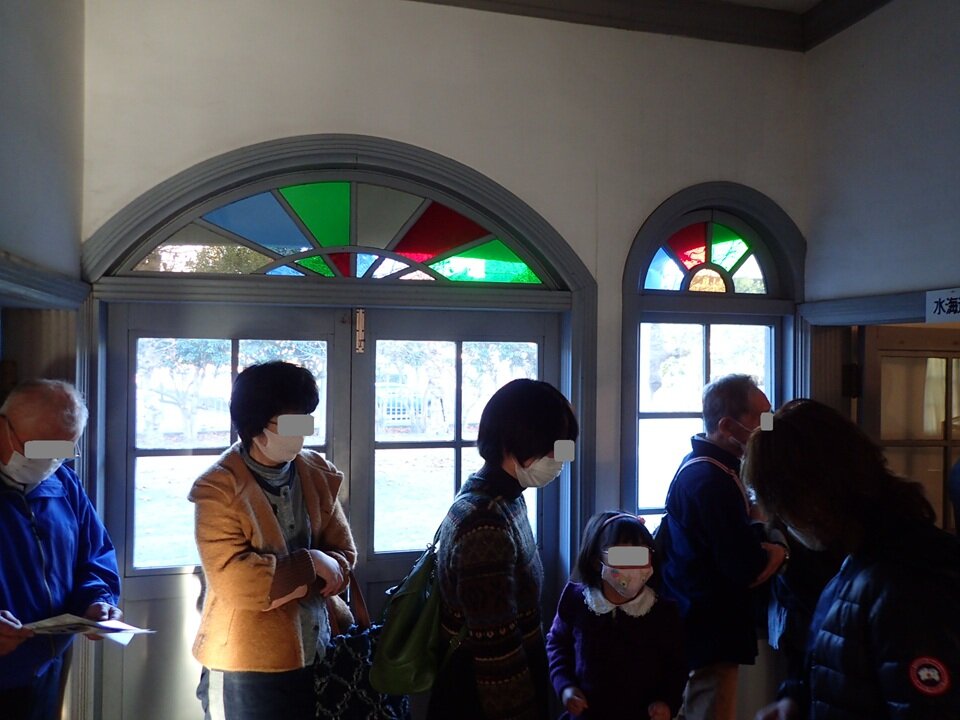玄関や室内のファンライトにはステンドグラスが施されていました。