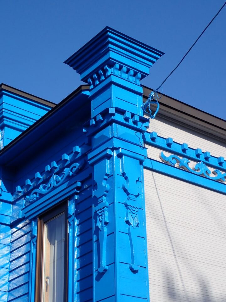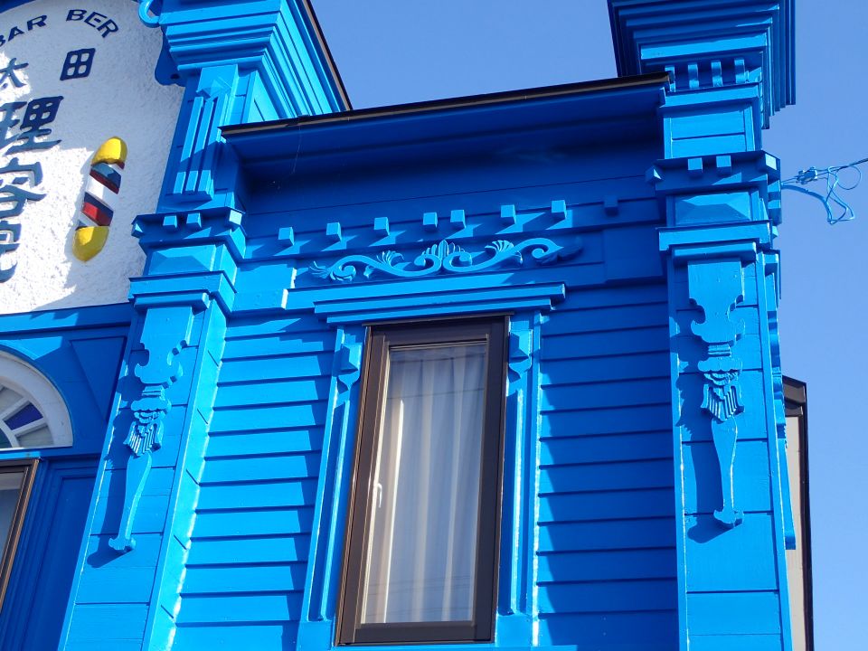 1階部分は改修されており、3連アーチ窓やバルコニーがあったという姿を見ることができないのが残念ですが、2階部分のデザインはほぼ建築当時のままだそうです。