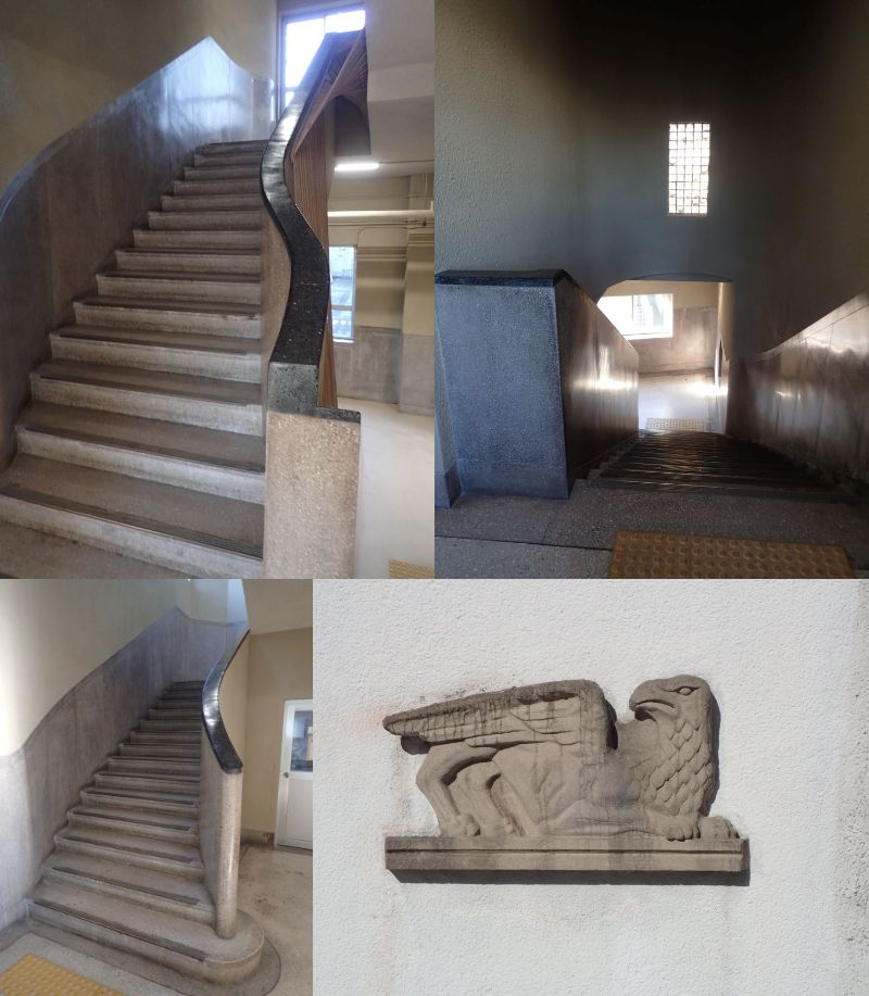 設計は階段の魔術師ともいわれる村野藤吾、初期の設計案件のためか階段の意匠はかなりおとなしい印象を受けますが、その片鱗が見られるのではないでしょうか?