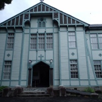 群馬県桐生市にある群馬大学工学部同窓記念会館(国登録有形文化財)旧桐生高等染織学校の校舎として1916年(大正5年)に建てられました。正面上部のハンマービームのほか、イギリスのテューダー様式の意匠が随所に見られます。背面は植栽のため全体像が分かりづらいですが外 ...