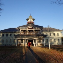茨城県水戸市にある旧水街道小学校本館です。水海道(現在の常総市)に町民有志の寄付により建てられましたが現在は水戸市にある茨城県立歴史館の広い敷地に移築されています。正面に広く張り出した車寄せ、2階にはアーチ型の破風があり、屋根の上にある八角形の鼓楼のカー ...