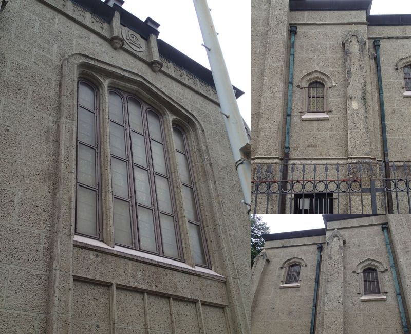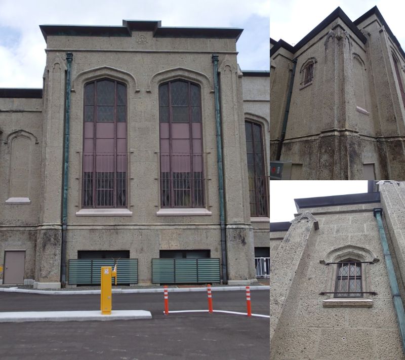 鉄筋コンクリート造三階建、外壁には秋保石を張ったカレッジ・ゴシックと呼ばれる様式