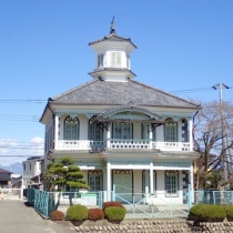 山梨県富士川町にある旧舂米(つきよね)学校です。山梨県令藤村紫朗の命により山梨県内に建てられた学校建築、いわゆる藤村式建築のうちの一つ立方体に近いプロポーションで、屋根の上に塔がある形状から「インク壺」と呼ばれています。六角形の太鼓楼の上部には鯱の飾りが ...